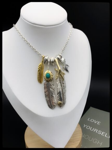 Golden feather inlaid turquoise chain set(高桥金色羽毛镶嵌松石套链)