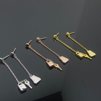 Pig nose diamond lock key earrings(H家猪鼻子镶钻锁头钥匙耳吊)
