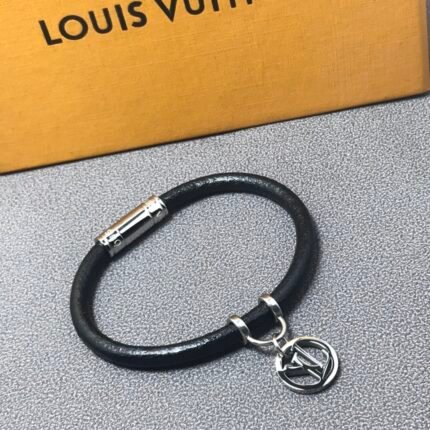 Black leather strap with silver logo bracelet(驴牌黑色皮带银色logo手镯)