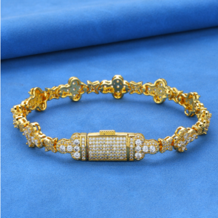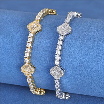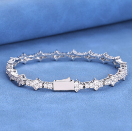 3.5mm S925 Silver Moissanite Tennis Chain motif Men’s Bracelet(3.5mmS925银莫桑石网球链四叶草男士手链)