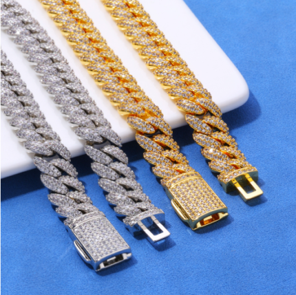 14mm diamond Cuban bracelet micro inlaid moissanite bracelet(14mm菱形古巴手链微镶莫桑钻手链)