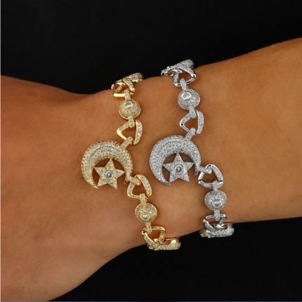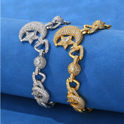 10mm S925 Silver Moon Star Moissanite Bracelet(S925银10mm月亮星星手链高级感男莫桑石手链)