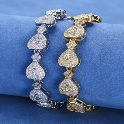 15mm US Dollar Money Bag S925 Silver Moissanite Men’s Bracelet(15mm美金钱袋古巴链饰品高级感S925银莫桑石男士手链)