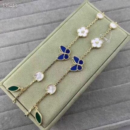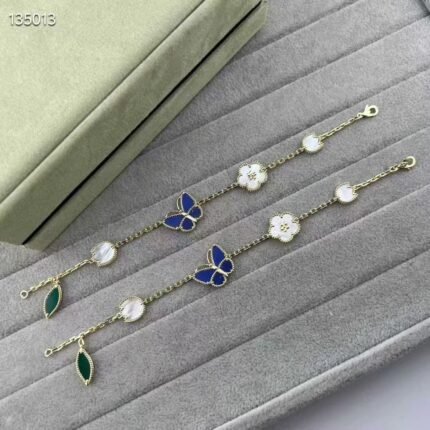 Blue Butterfly and Plum Blossom 5 Motifs Bracelet(蓝色蝴蝶梅花五花手链)