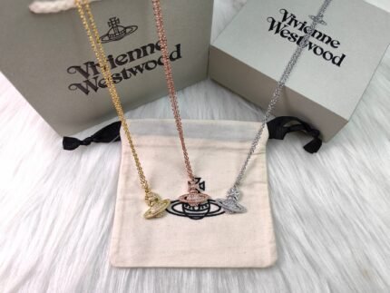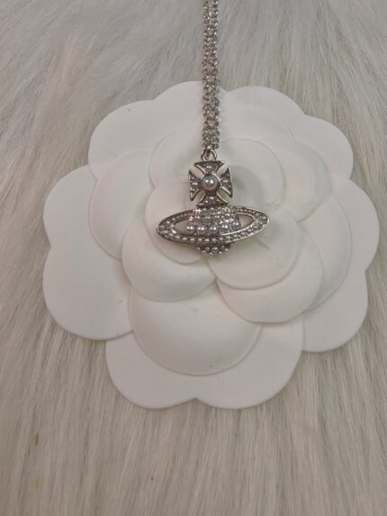 Arc-shaped diamond studded Saturn necklace(西太后弧形镶钻小土星项链)
