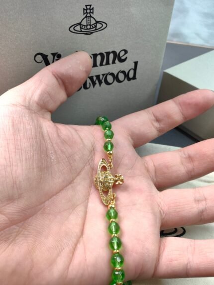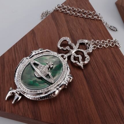 Green Crystal Saturn Necklace(西太后绿色水晶土星项链)