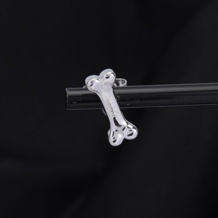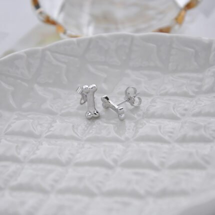 White gold glossy small bone earrings(西太后光面小骨头耳钉 白金色)