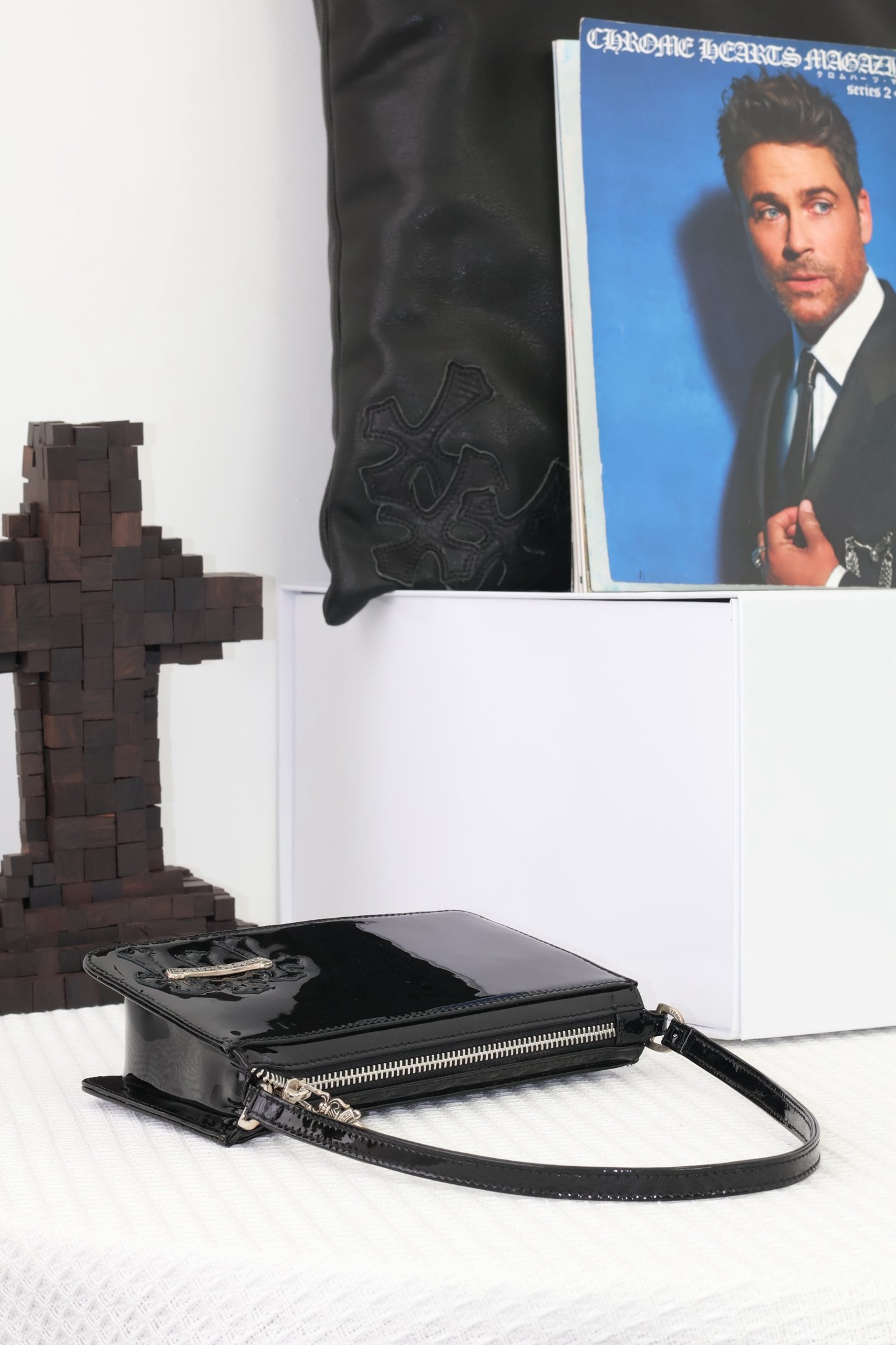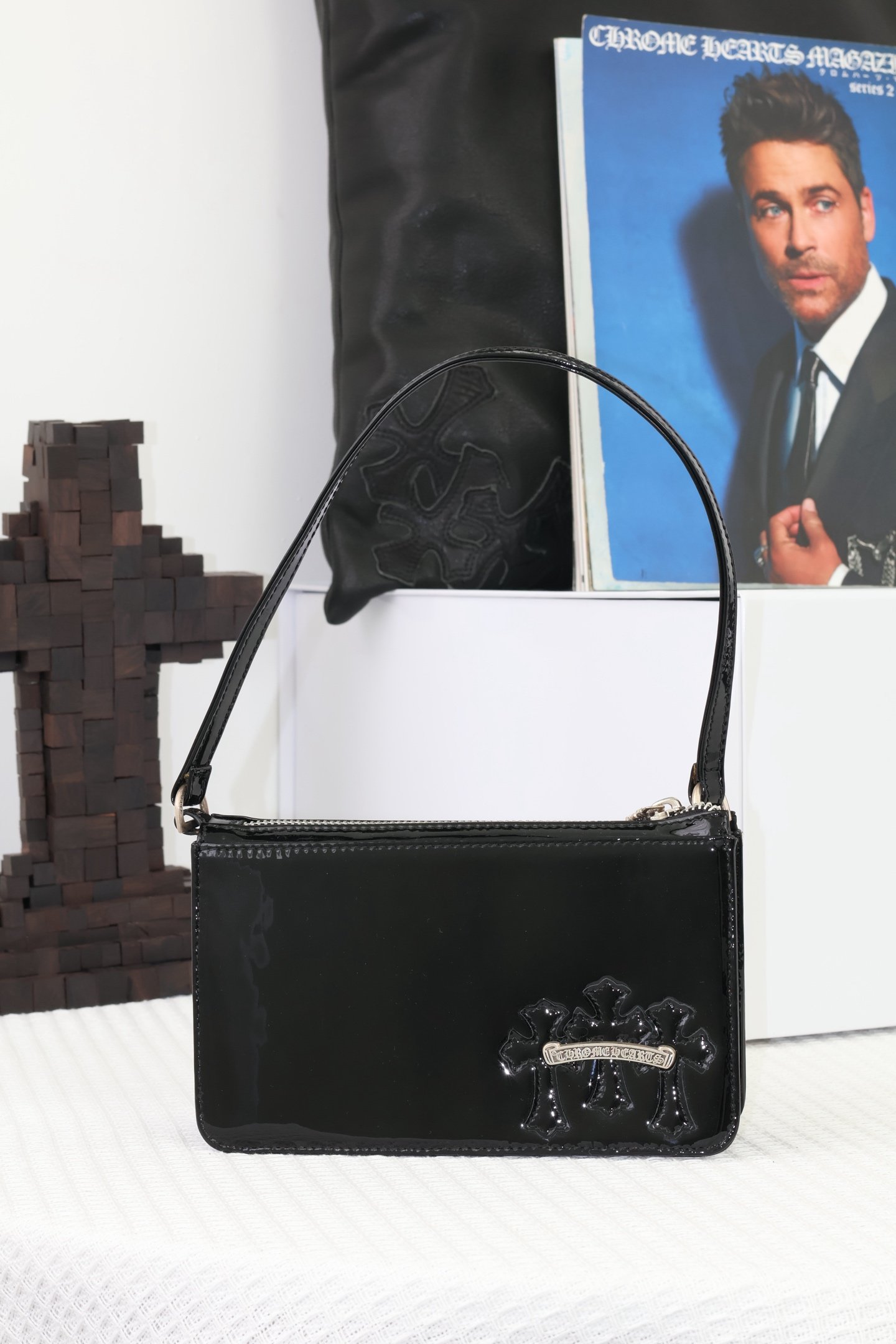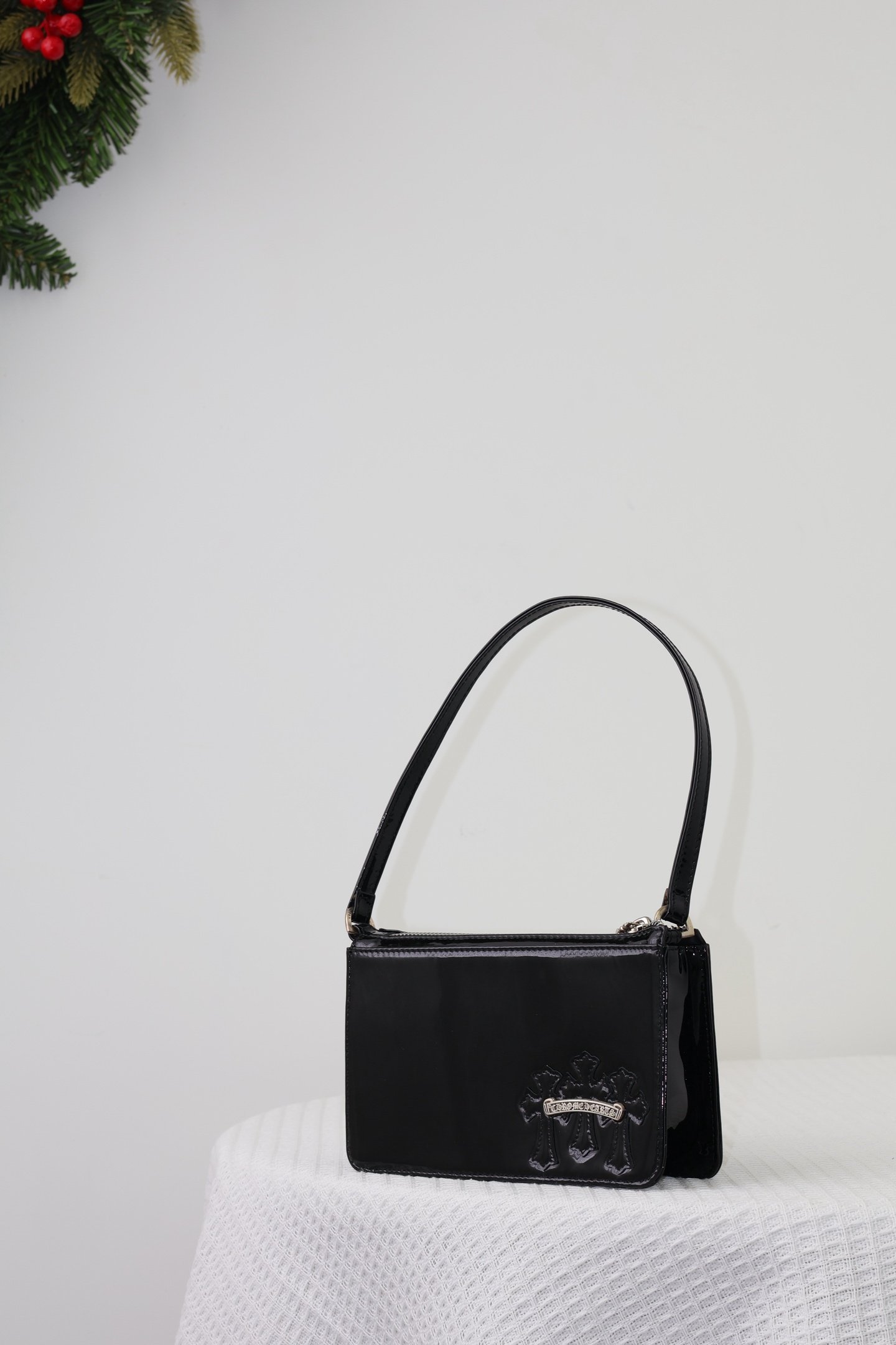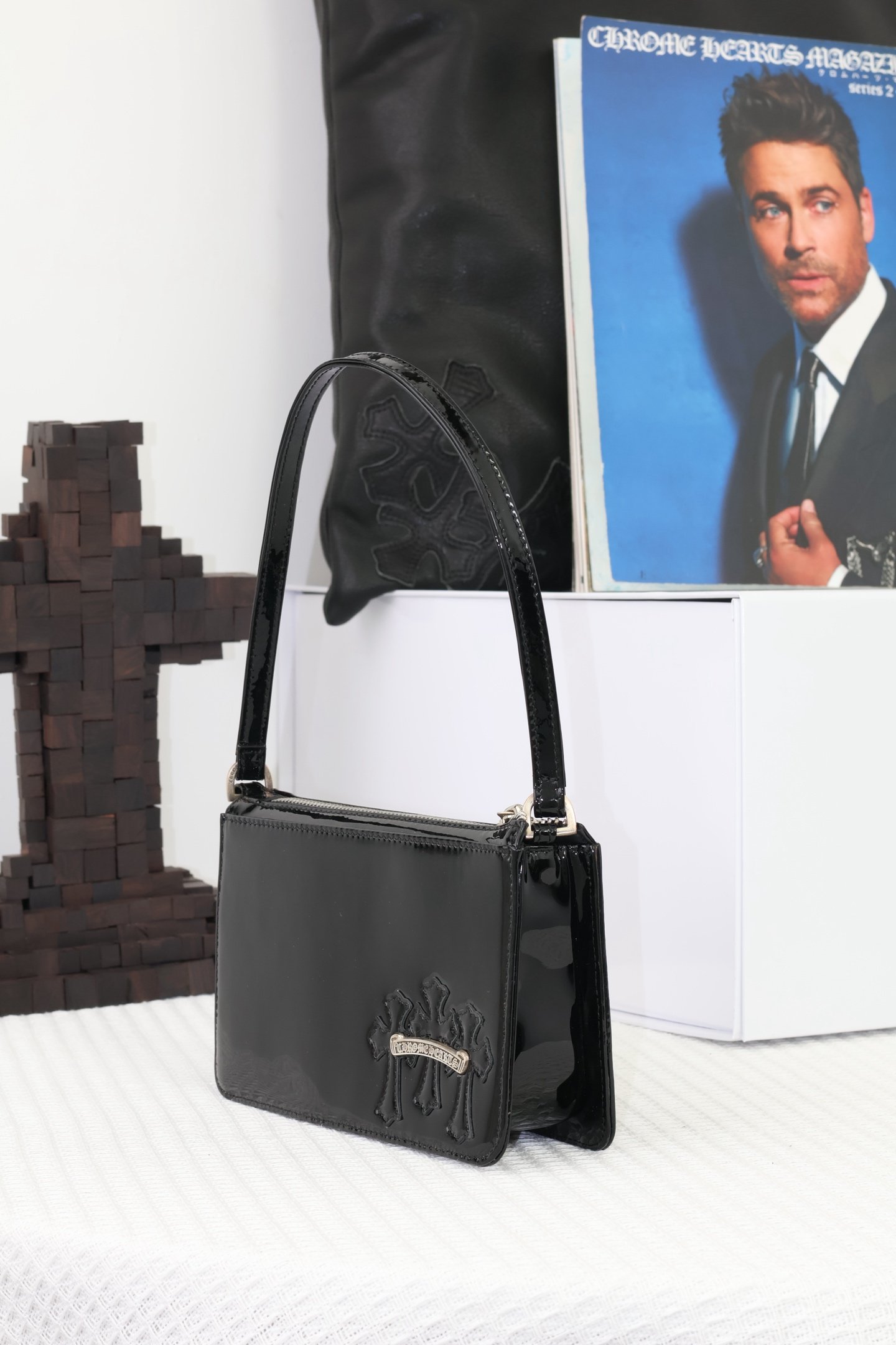 Home Chrome Hear* Bag 𝖳𝗁𝖾 𝗇𝗂𝗀𝗁𝗍 𝖻𝖺𝗀-Patent leather and cowhide(𝖳𝗁𝖾 𝗇𝗂𝗀𝗁𝗍 𝖻𝖺𝗀方形腋下包-漆皮牛皮)