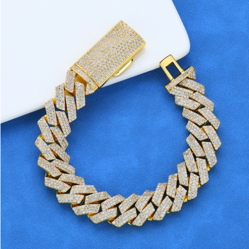 14mm diamond Cuban bracelet micro inlaid moissanite bracelet(14mm菱形古巴手链微镶莫桑钻手链) $1.00