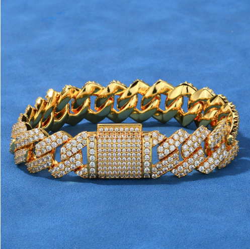 14mm diamond Cuban bracelet micro inlaid moissanite bracelet(14mm菱形古巴手链微镶莫桑钻手链)
