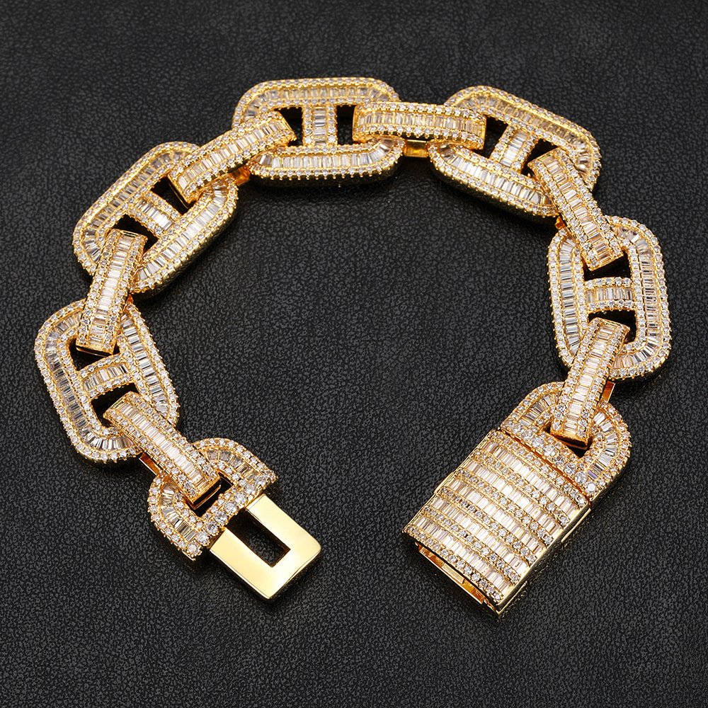 Home Free Brand Bracelet 15mm copper inlaid zircon pig nose Cuban chain(15mm铜镶锆石猪鼻子古巴链)
