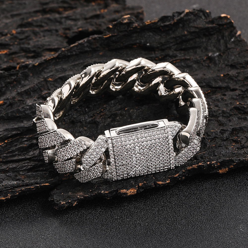 Home Free Brand Bracelet 20mm flip clasp three-row zircon diamond Cuban chain(20mm翻盖扣三排锆石菱形古巴链)