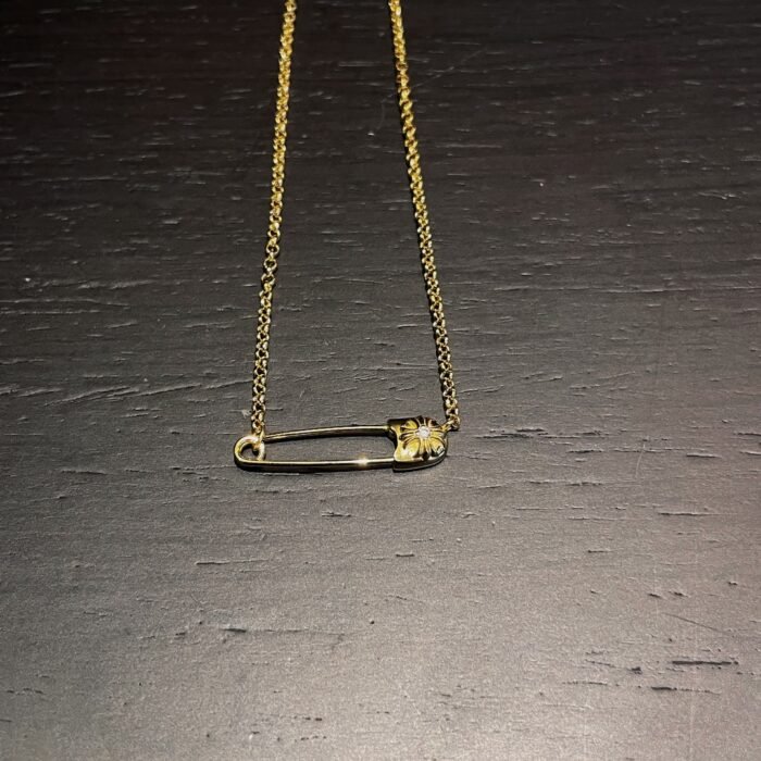 22k gold-plated diamond pin necklace(22k镀金带钻别针项链)