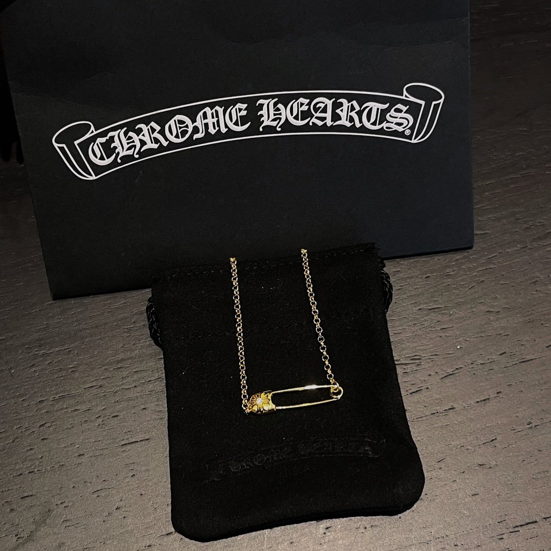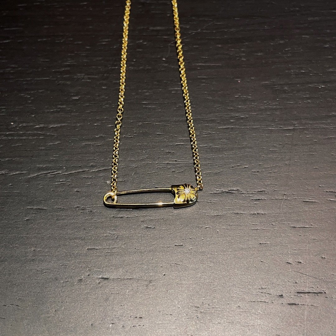 Home Chrome Hear* Necklace 22k gold-plated diamond pin necklace(22k镀金带钻别针项链)