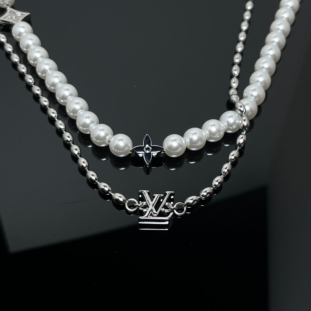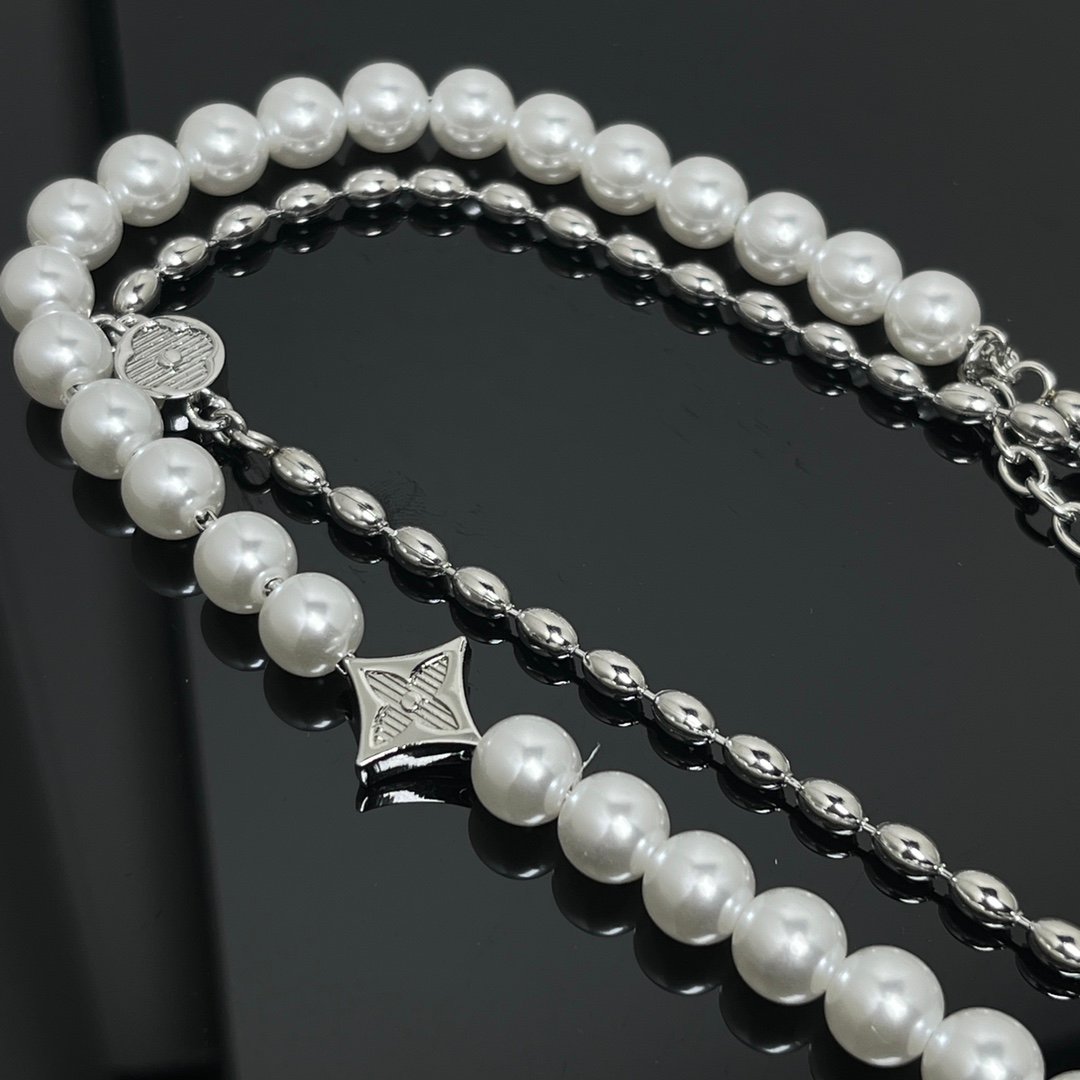 Home Louis V* Necklace 24ss white artificial pearl necklace(驴牌24ss白色人工珍珠项链)