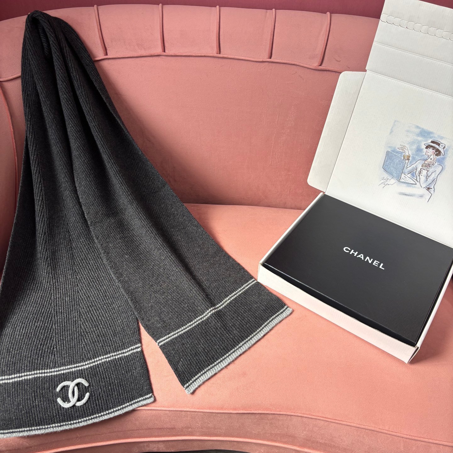 Home Scarf Chane* 25b Knitted Cashmere – Gray(25b针织羊绒-灰)