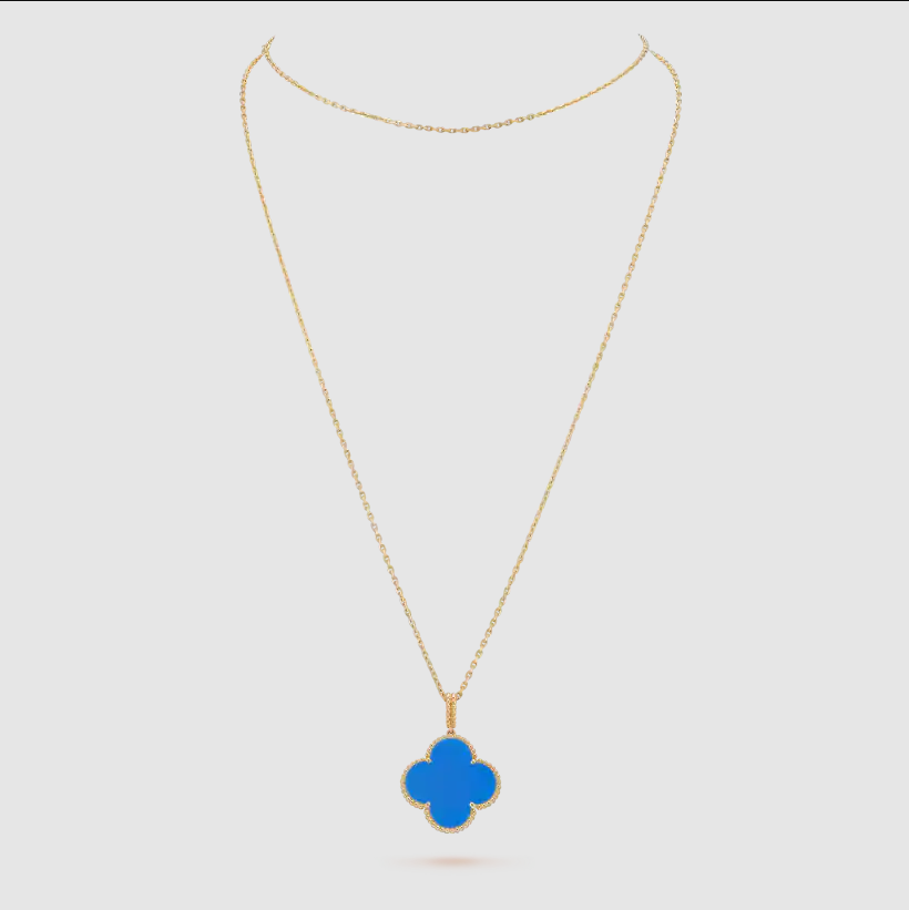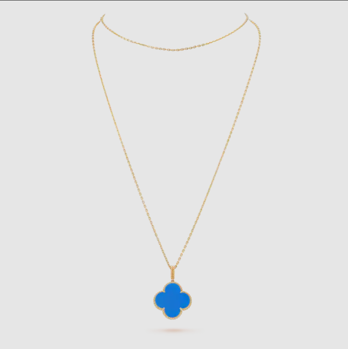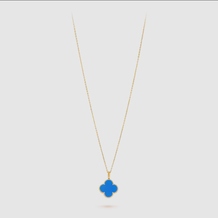 Home Van Cle* Necklace 26mm yellow gold chain blue agate single motif necklace(26mm金色蓝玛瑙四叶草单花项链)