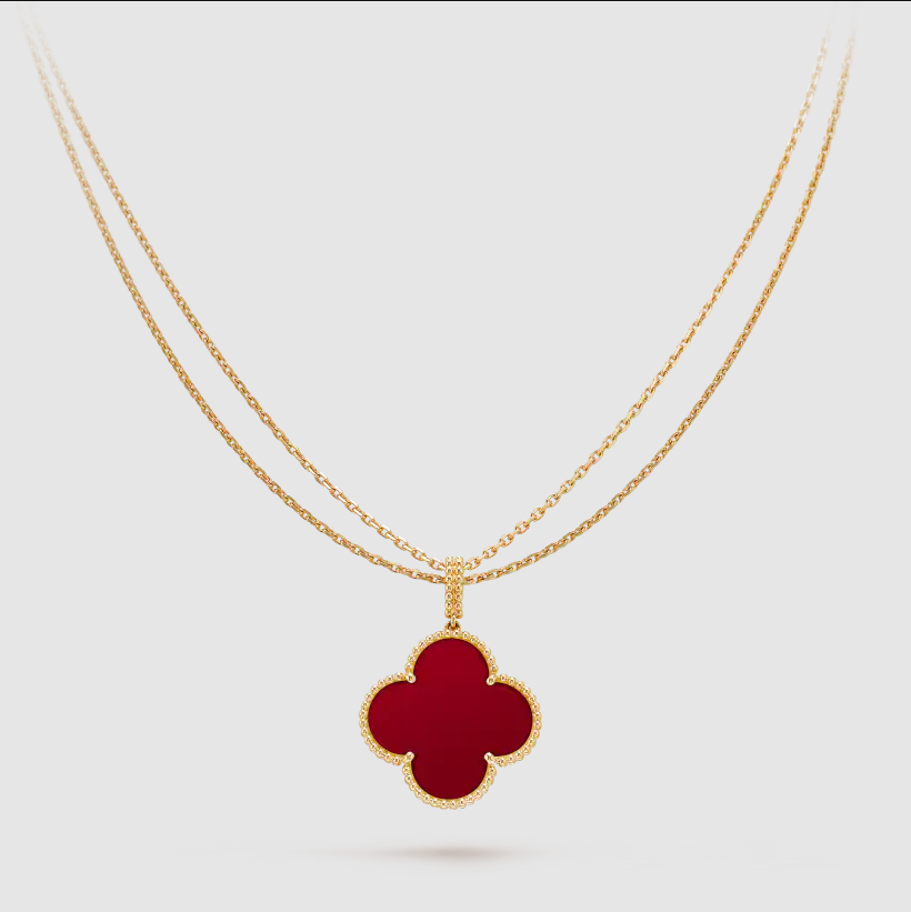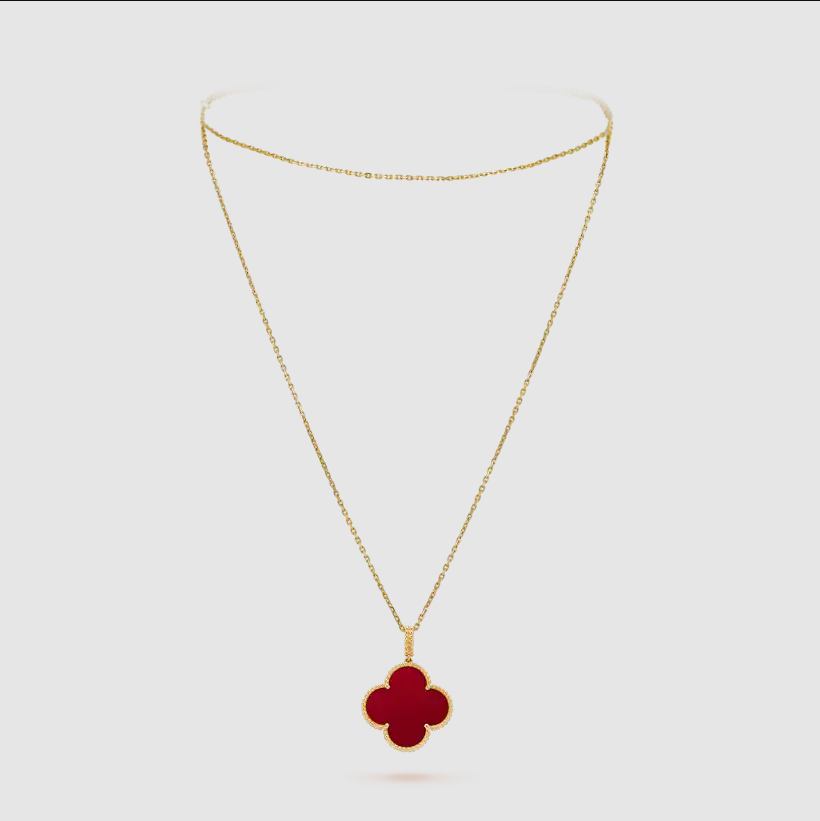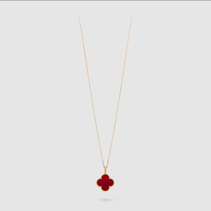 Home Van Cle* Necklace 26mm yellow gold chain red agate single motif necklace(26mm金色红玛瑙四叶草单花项链)