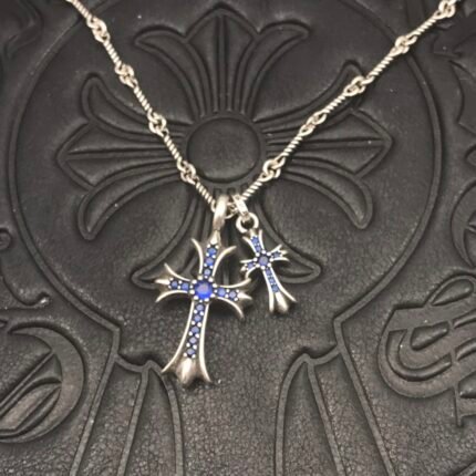 Blue Diamond Distressed Double Cross Necklace(克家蓝钻做旧款双十字架项链)