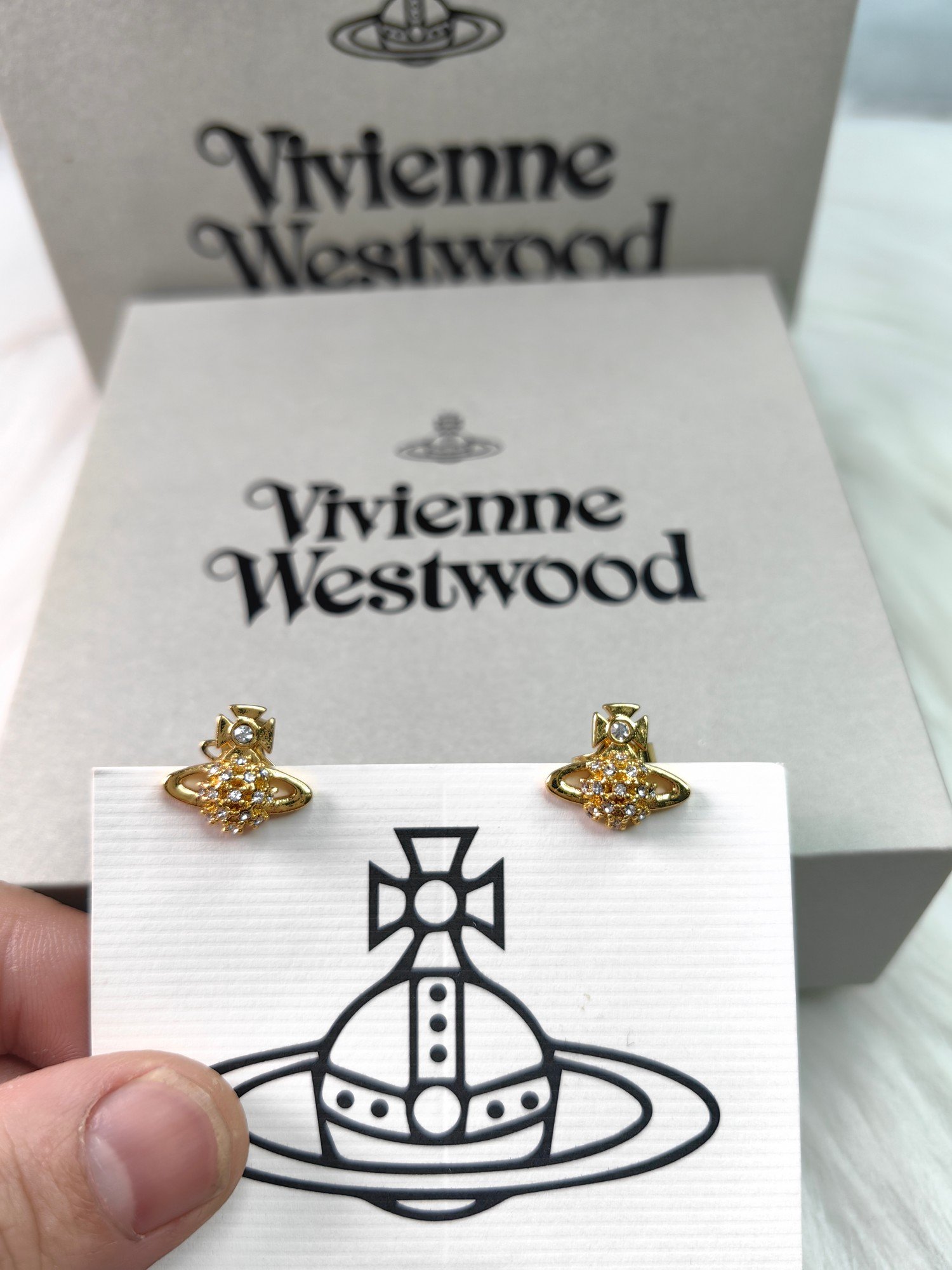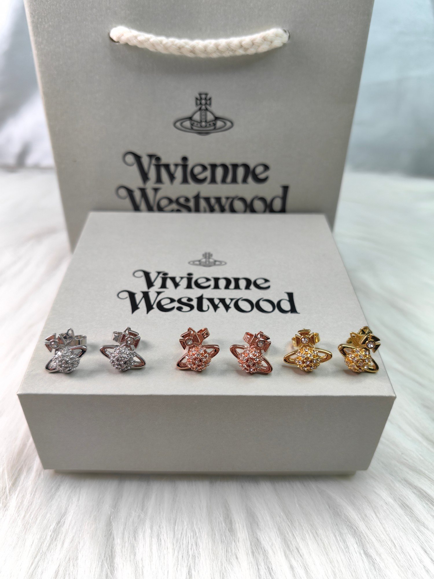 弧形镶钻小土星耳钉