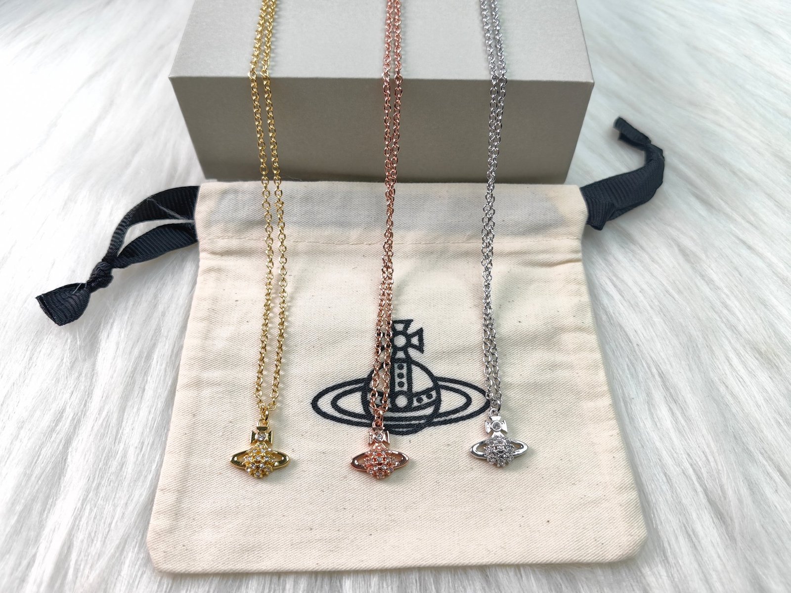 Home Vivi Necklace Arc-shaped diamond studded Saturn necklace(西太后弧形镶钻小土星项链)