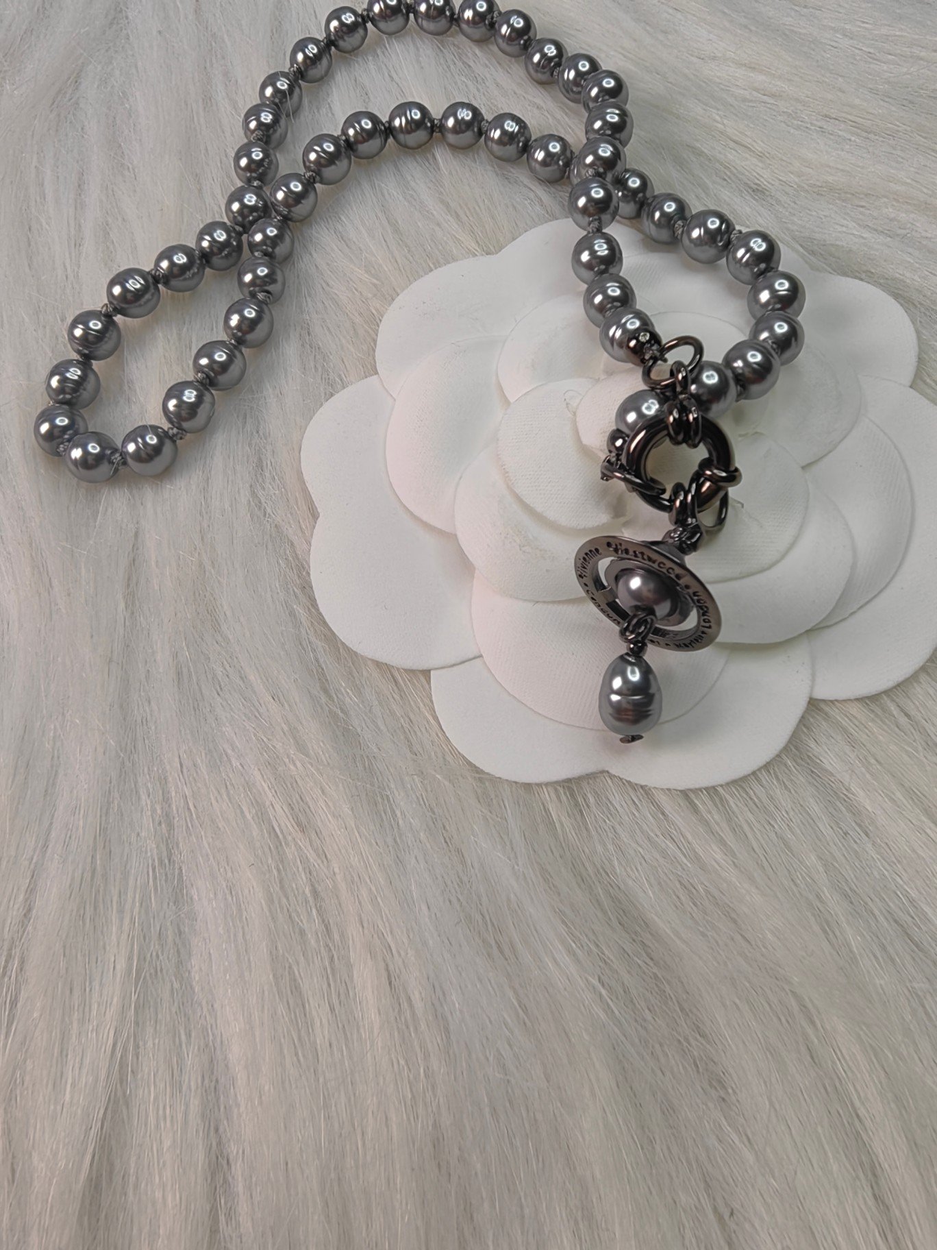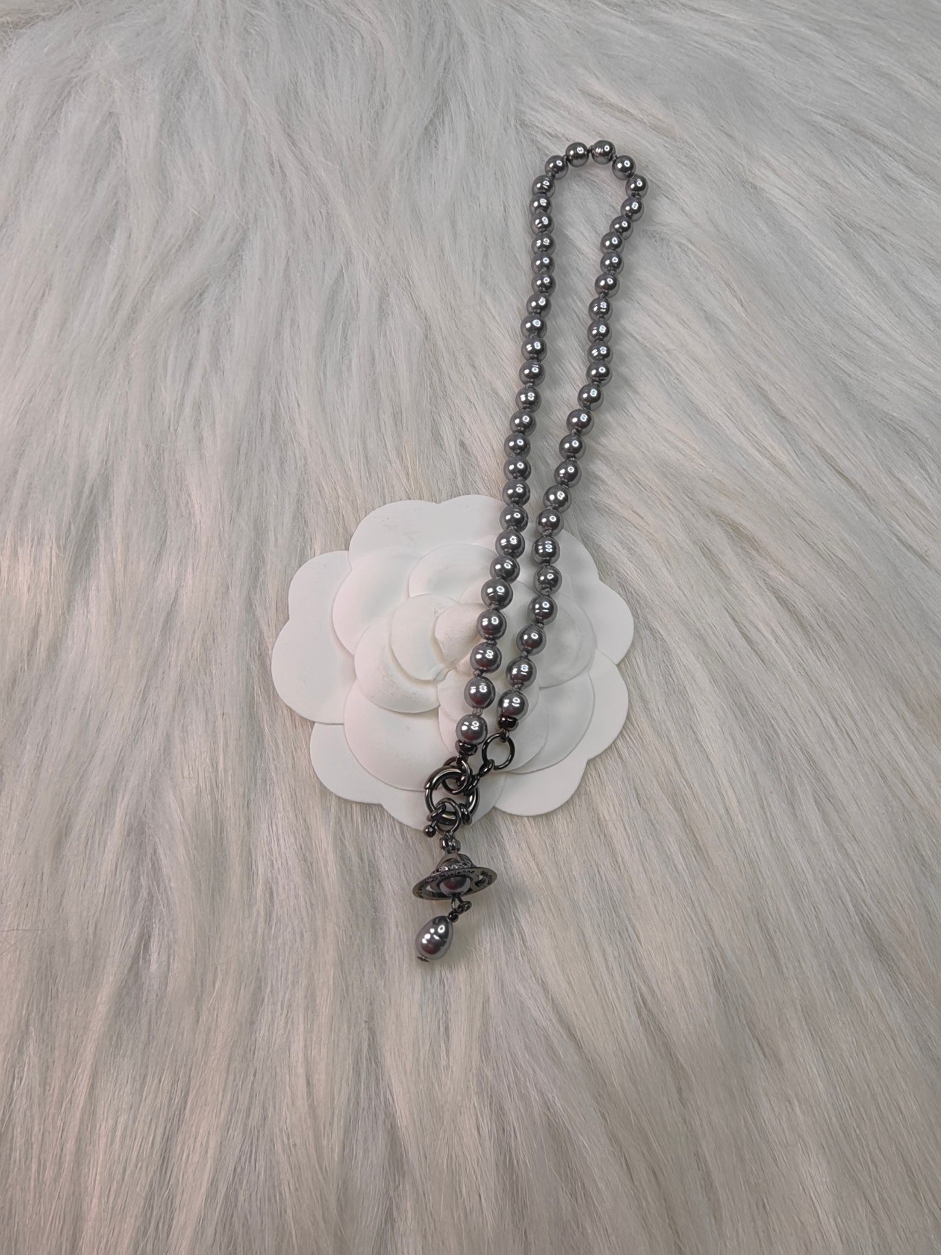 White Gold Saturn Giant Pearl Collar Necklace(西太后土星巨型珍珠锁骨项链—白金色)