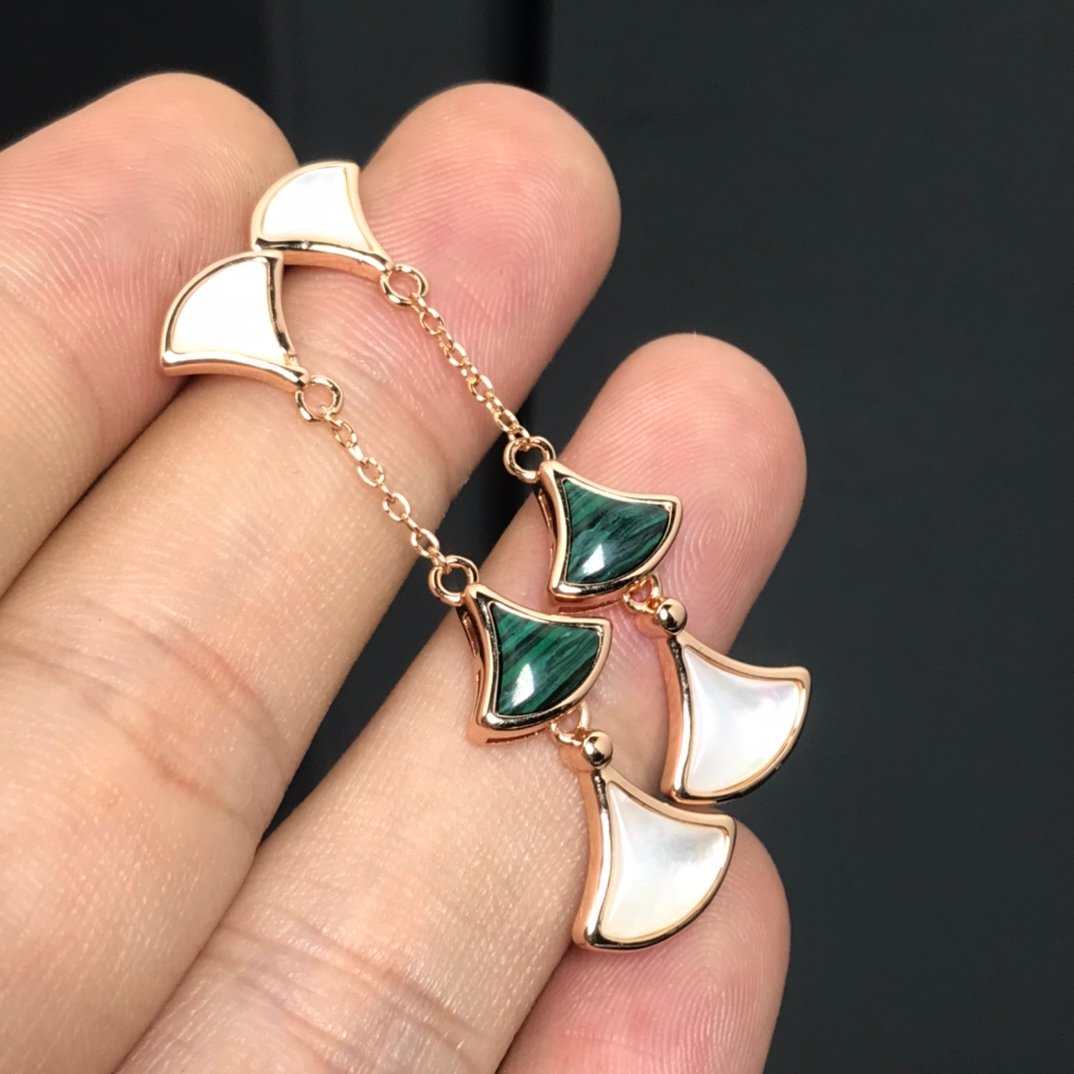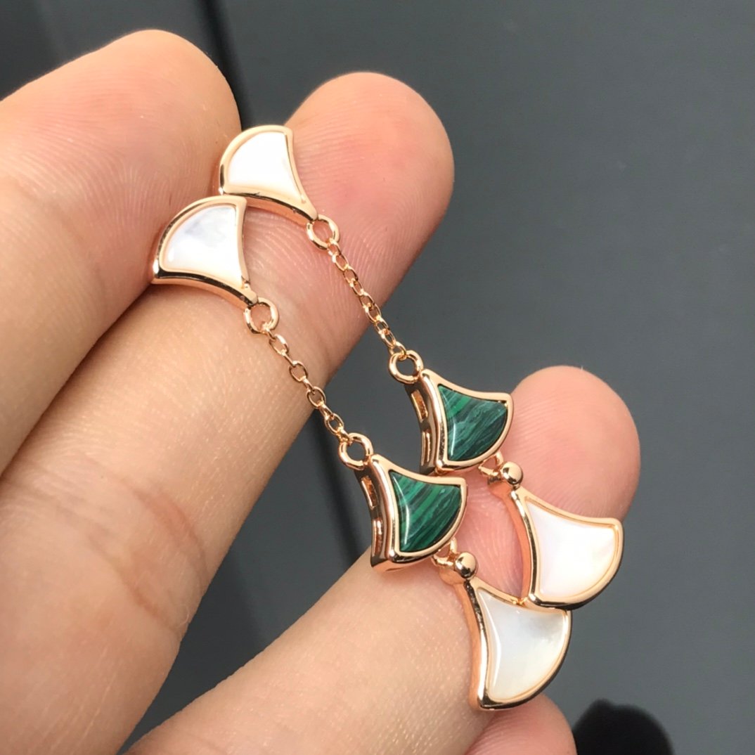 pearl fan shaped diamond earrings(宝家贝母扇形镶钻耳钉)