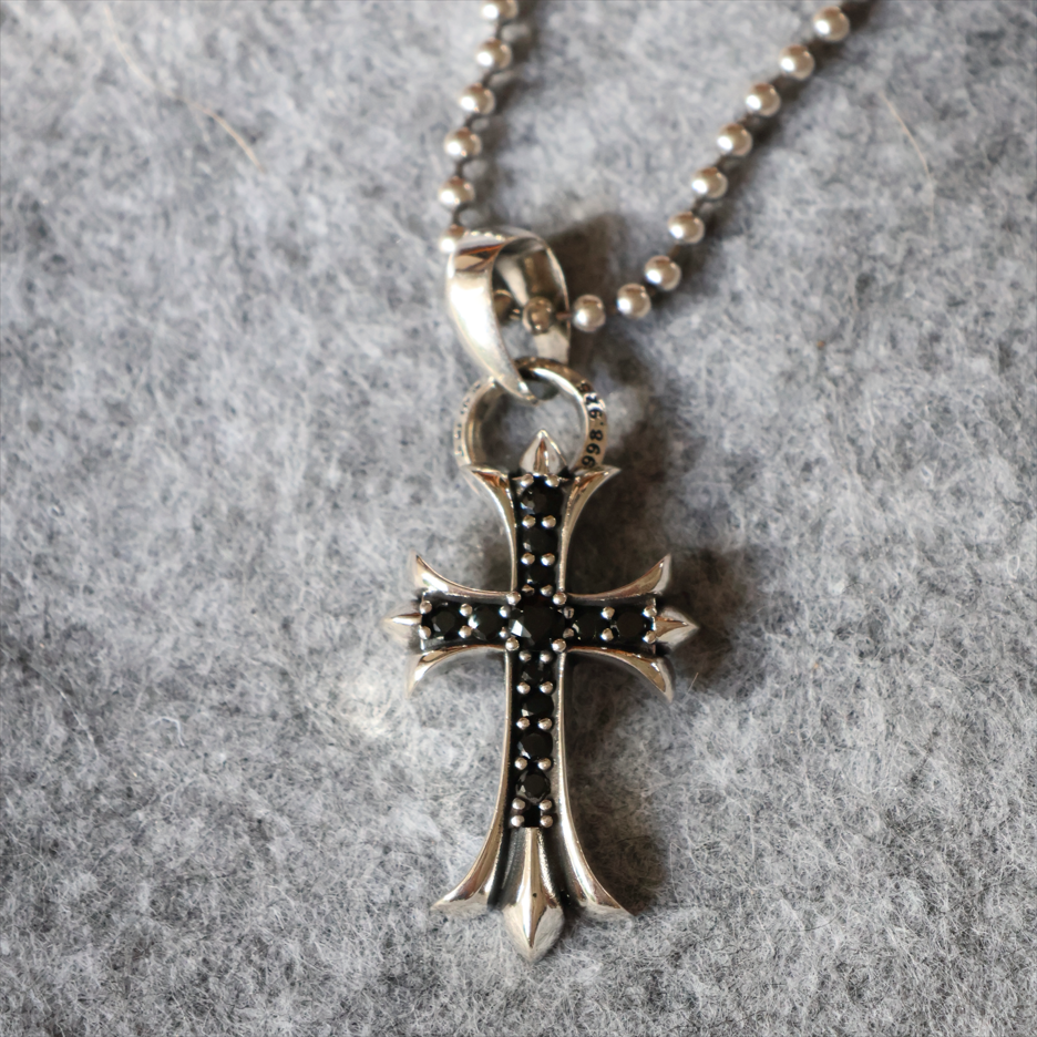 Home Chrome Hear* Necklace Black diamond water drop cross necklace(黑钻水滴十字架项链)
