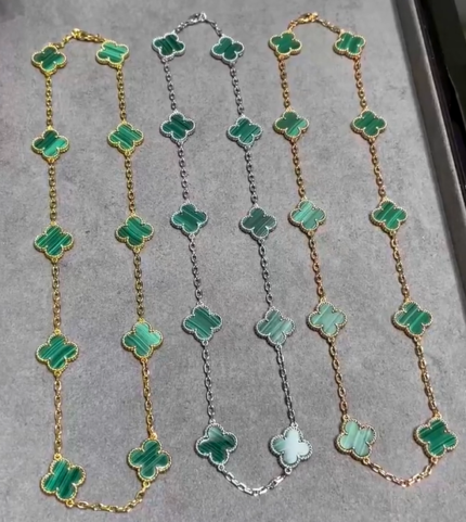 Malachite 10 motifs necklace(孔雀石四叶草十花项链) $100.00