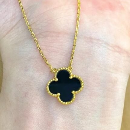 Black onyx single motif necklace(黑玛瑙四叶草单花项链)
