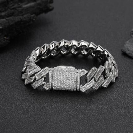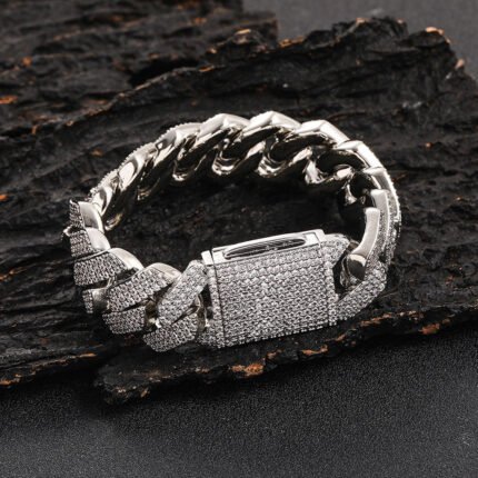 Flap Buckle Single Row Zirconia Cuban Chain Bracelet(翻盖扣单排锆石古巴手链)