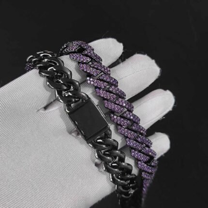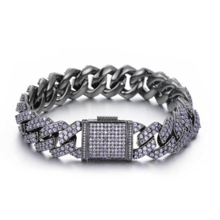 15mm double row zircon purple diamond Cuban bracele(15mm双排锆石紫色菱形古巴手链)