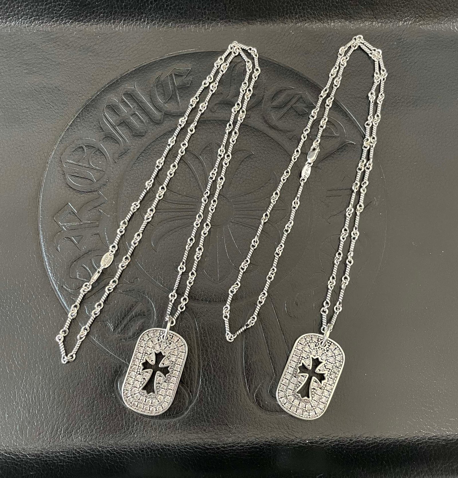 Home Chrome Hear* Necklace Cross Square Diamond Pendant Necklace(克家十字架方块镶钻吊坠项链)