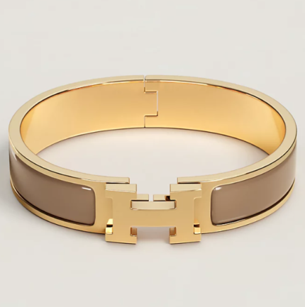 Gold buckle maroon leather Clic H bracelet(H家金扣栗皮Clic H手镯)