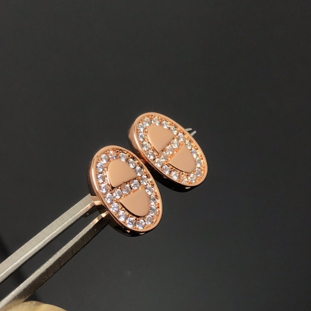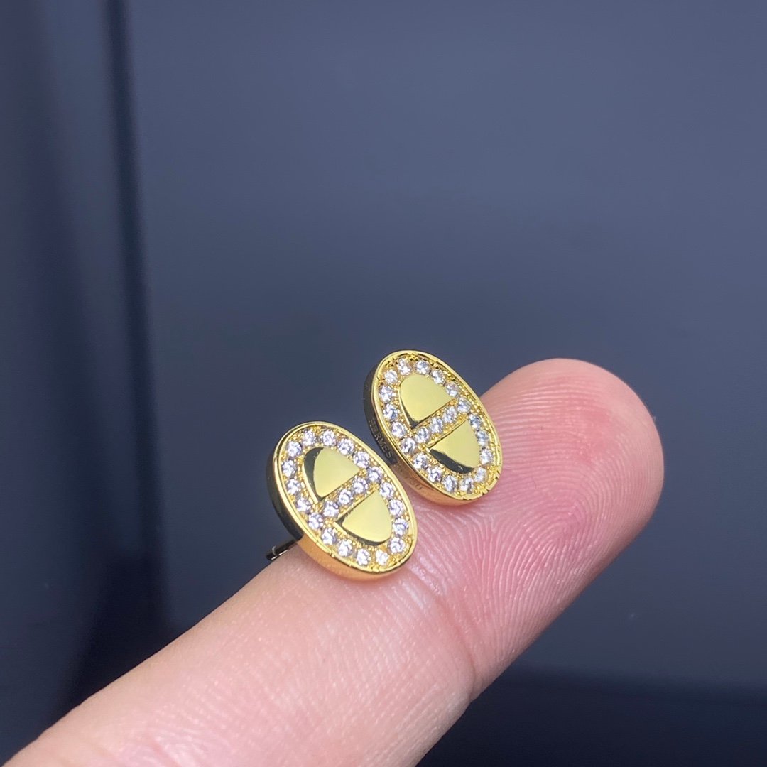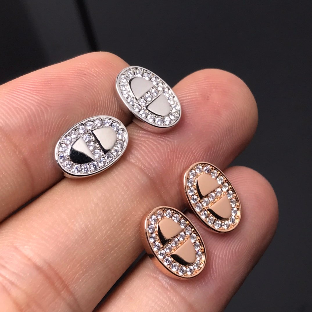 Home Herme* Earring Diamond Pig Nose Stud Earrings(H家镶钻猪鼻子耳钉)