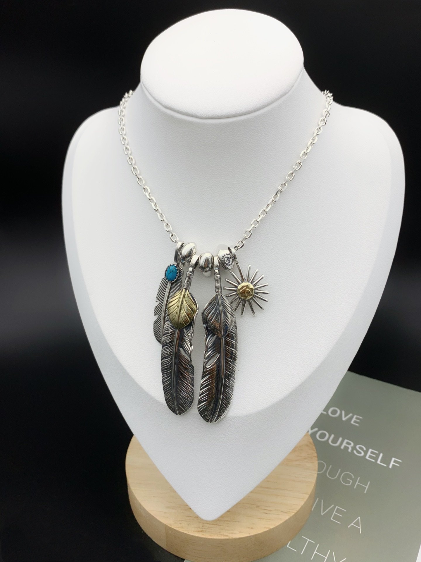 Golden Sunflower Eagle Claw Feather Chain(高桥金色太阳花鹰爪羽毛套链)