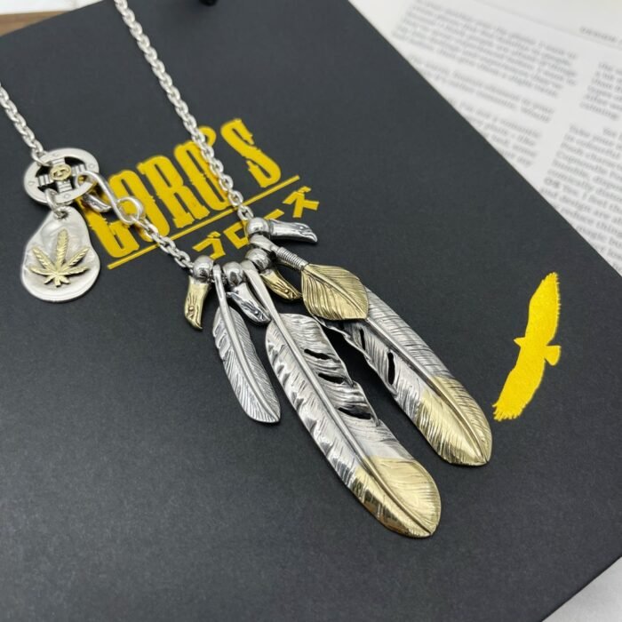 Golden Four Feather Chain Set(高桥金色四羽毛套链) $175.00