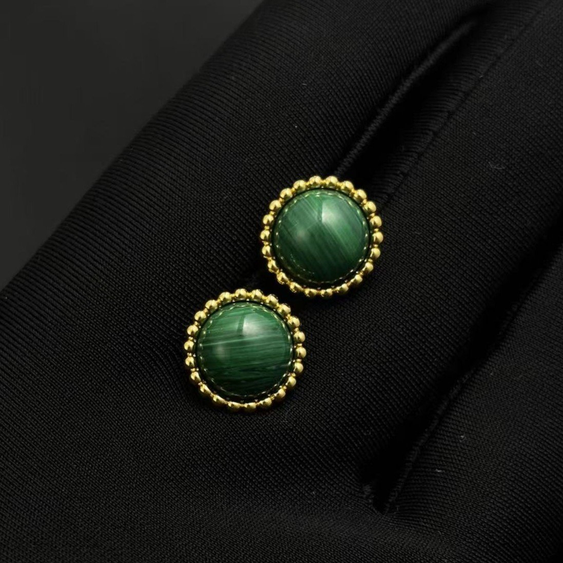 Gold malachite Perlee earrings(金色绿玛瑙perlee耳钉)