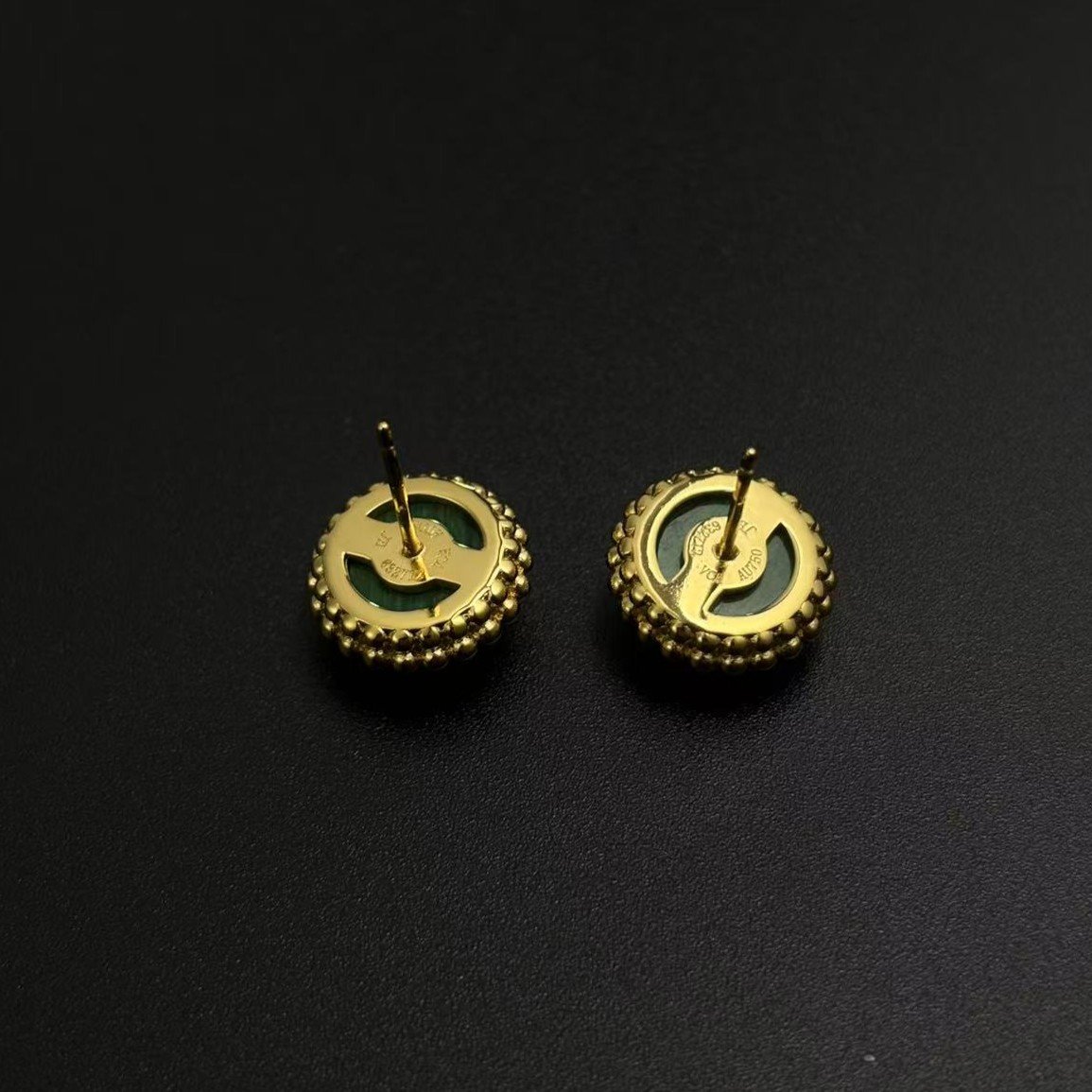 Home Van Cle* Earring Gold malachite Perlee earrings(金色绿玛瑙perlee耳钉)
