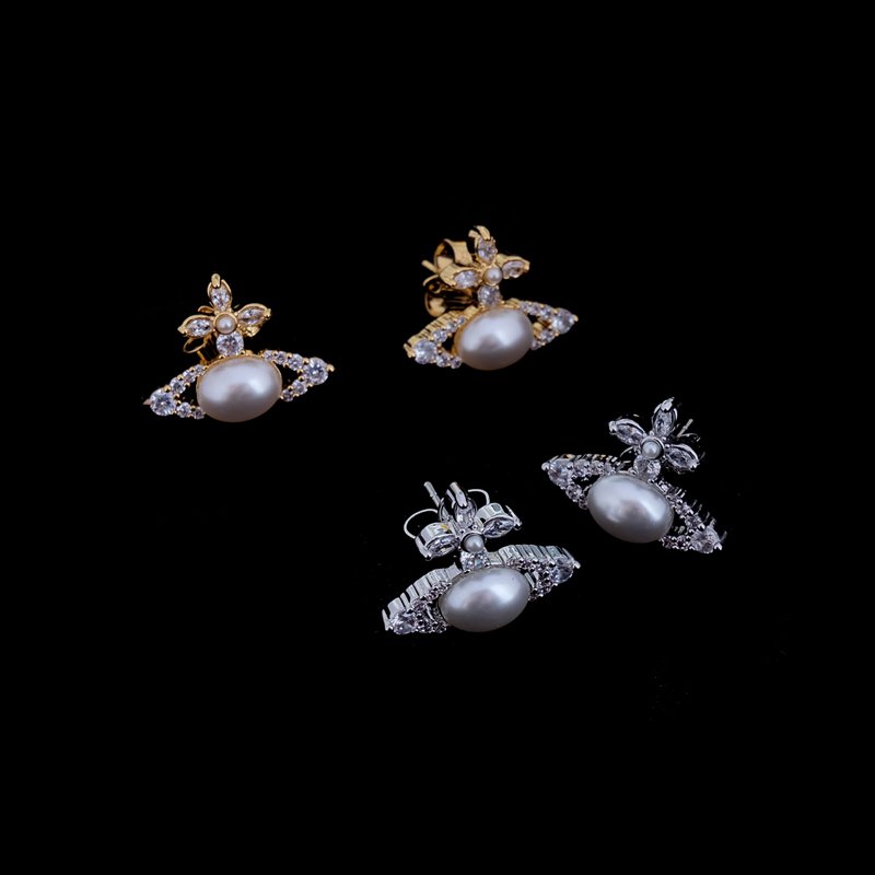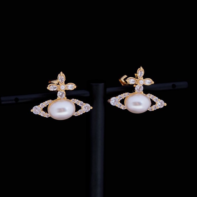 Pearl studded Saturn earrings(西太后镶珍珠土星耳钉) $35.00