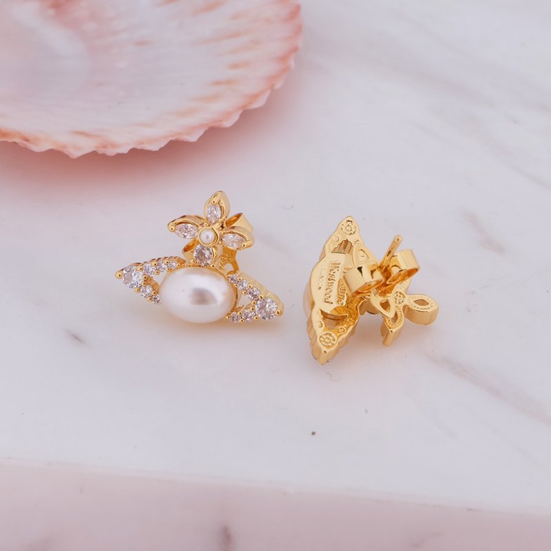 Home Vivi Earring Gold Oval Pearl Earrings(西太后椭圆珍珠耳钉-金色)
