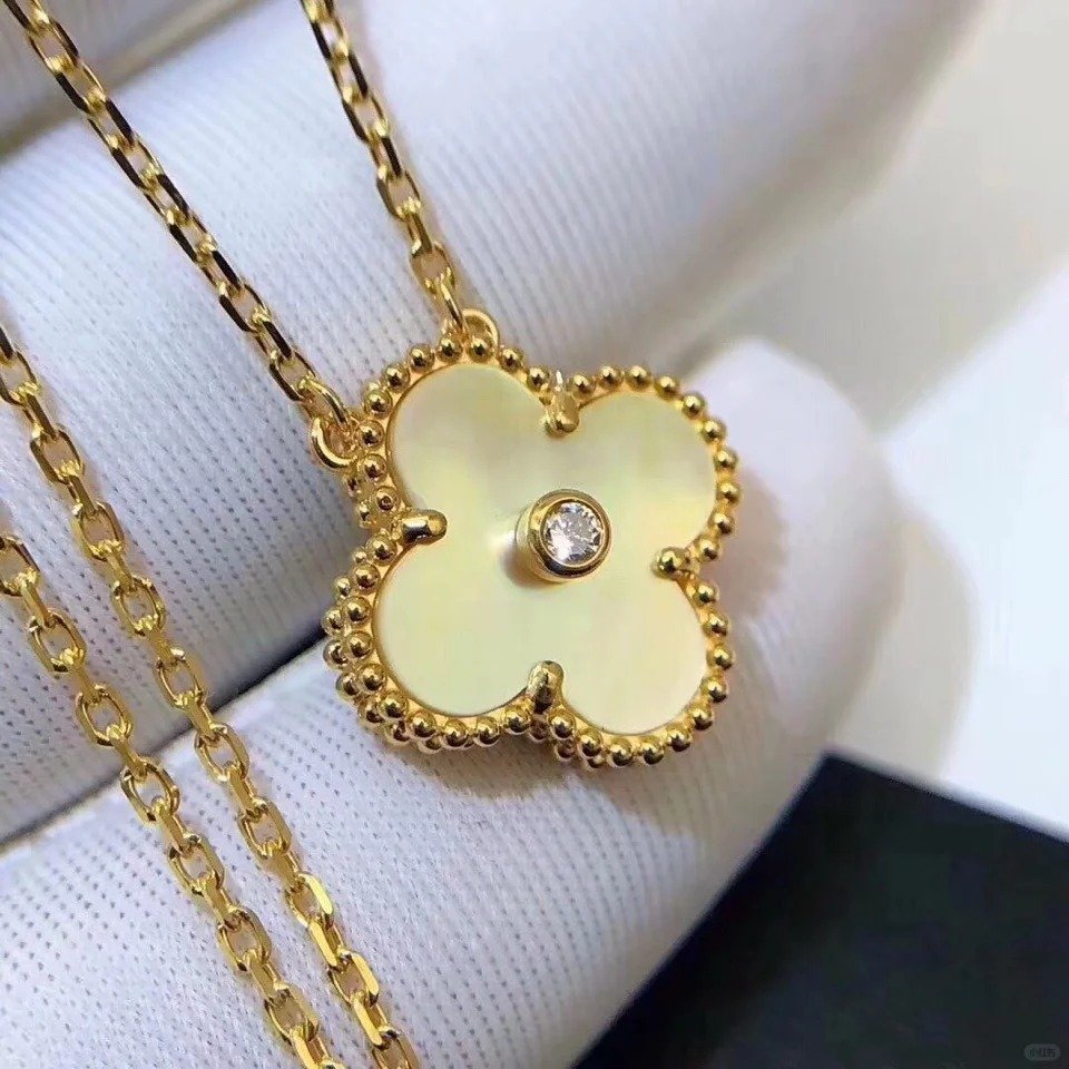 Home Van Cle* Necklace Gold pearl gold single motif necklace-with zircon(金贝母金色间钻四叶草单花项链)