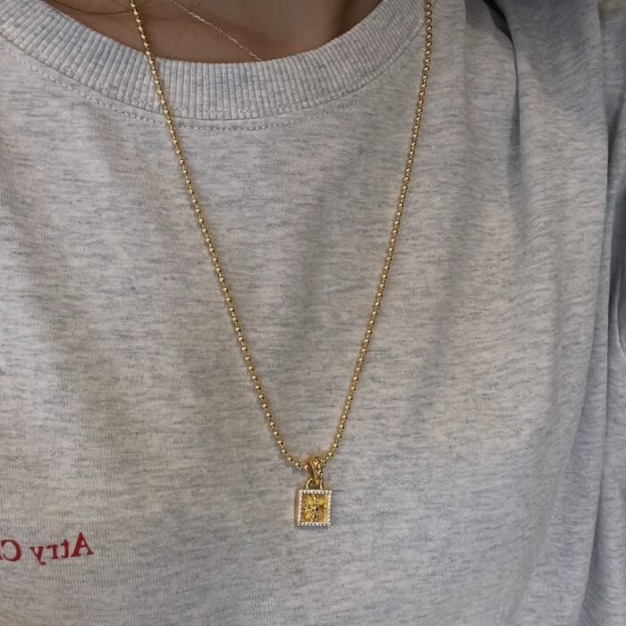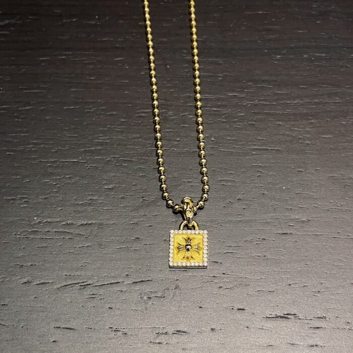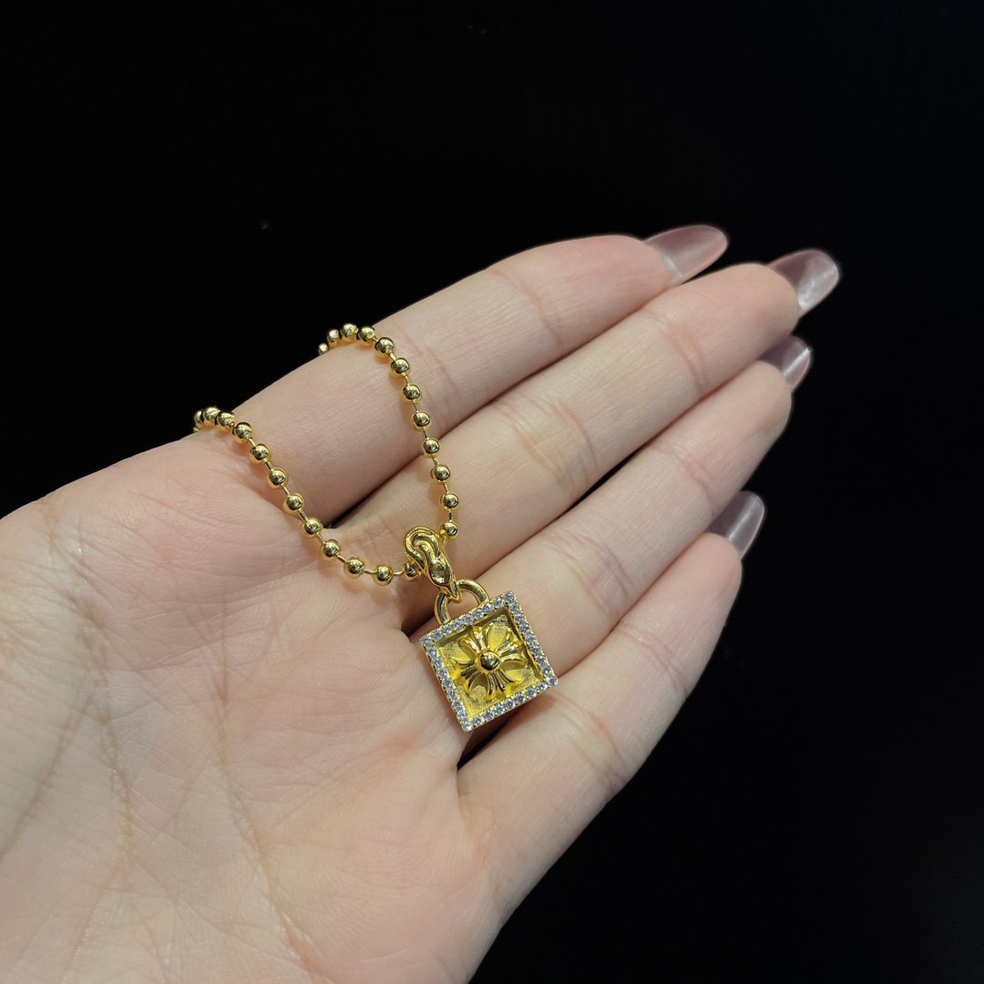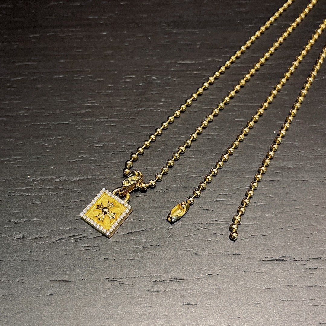 Home Chrome Hear* Necklace Gold-plated full cross flower small square card(镀金满镶十字花小方牌)