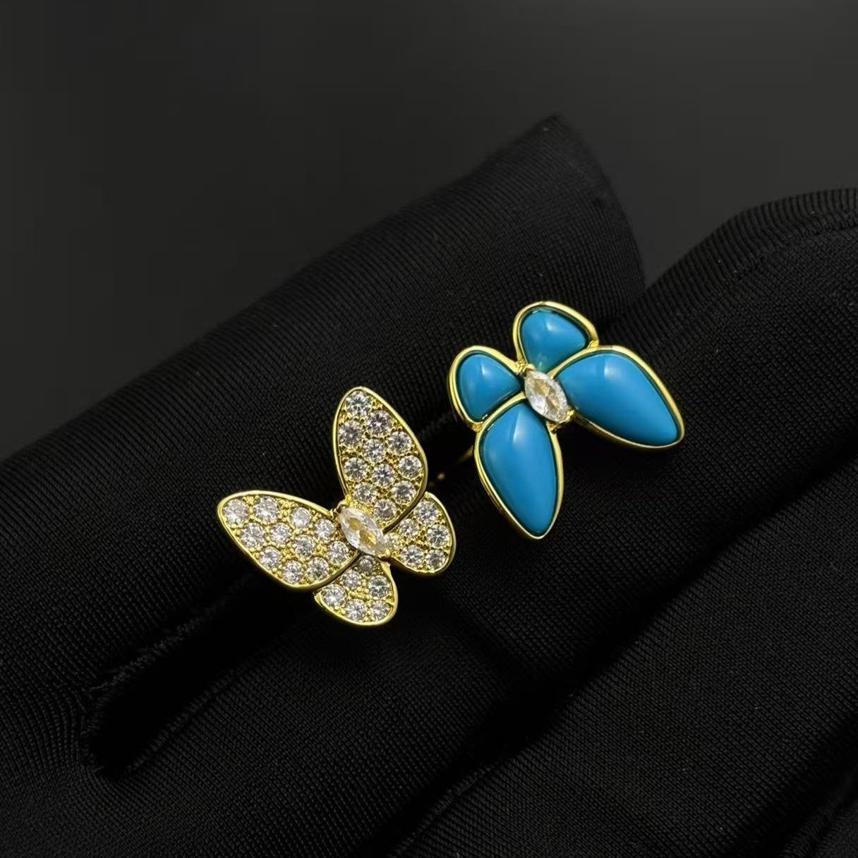 Gold turquoise full stone butterfly earrings(金色绿松石满钻蝴蝶耳钉) $80.00