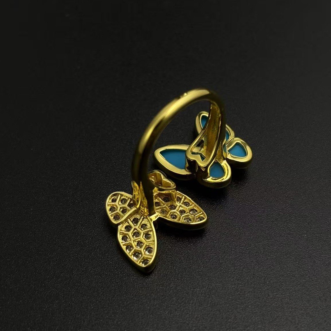 Gold turquoise full stone double butterfly ring(金色绿松石满钻双蝴蝶戒指)