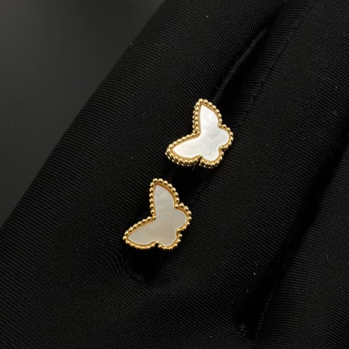 Home Van Cle* Earring Gold white mother pearl butterfly earrings(金色白贝母蝴蝶耳钉)