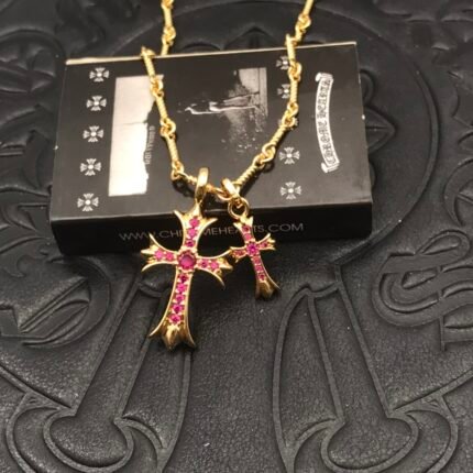 Pink Diamond Double Cross Necklace(克家粉钻双十字架项链)