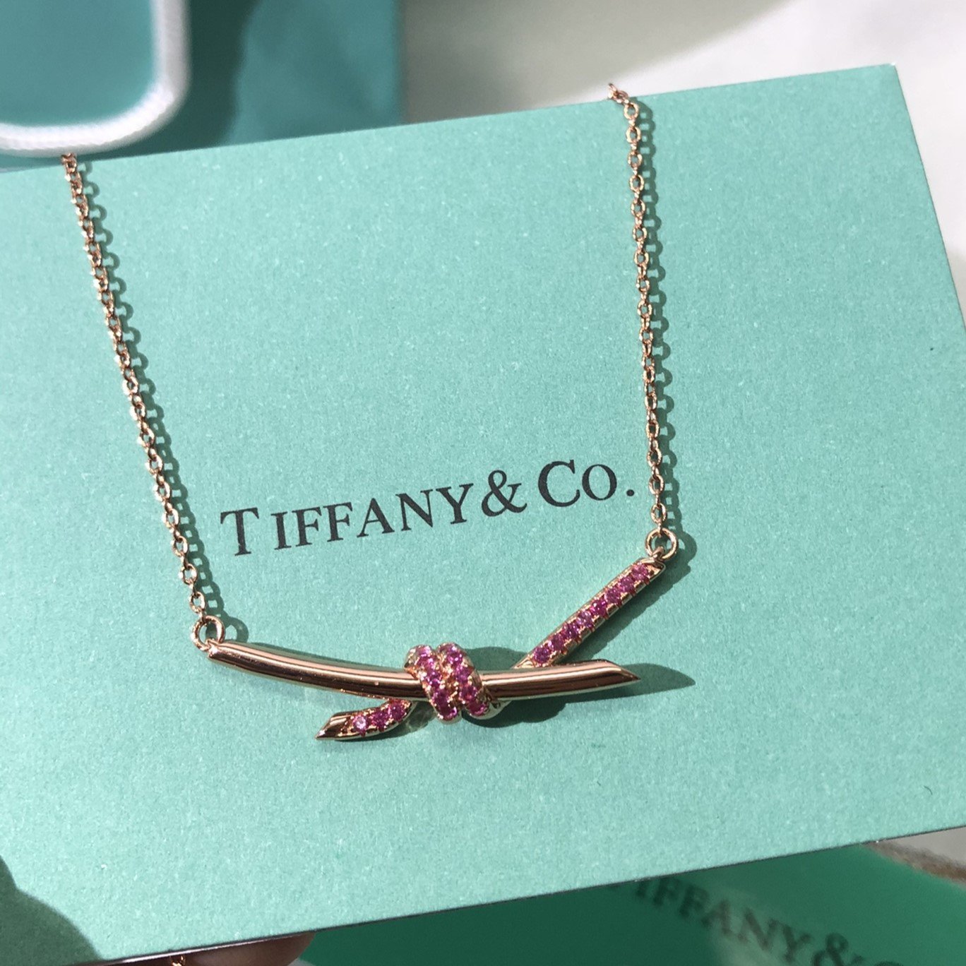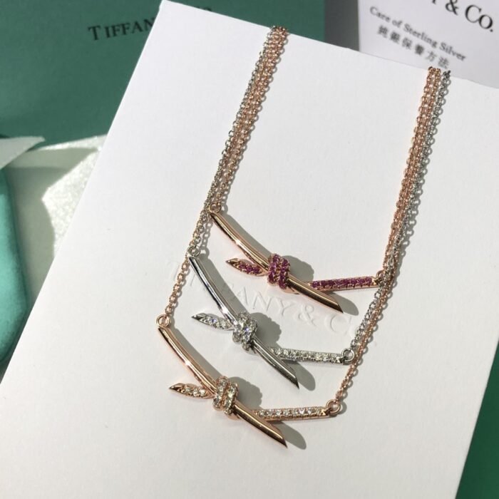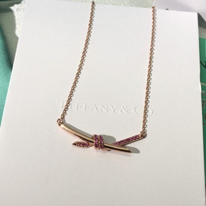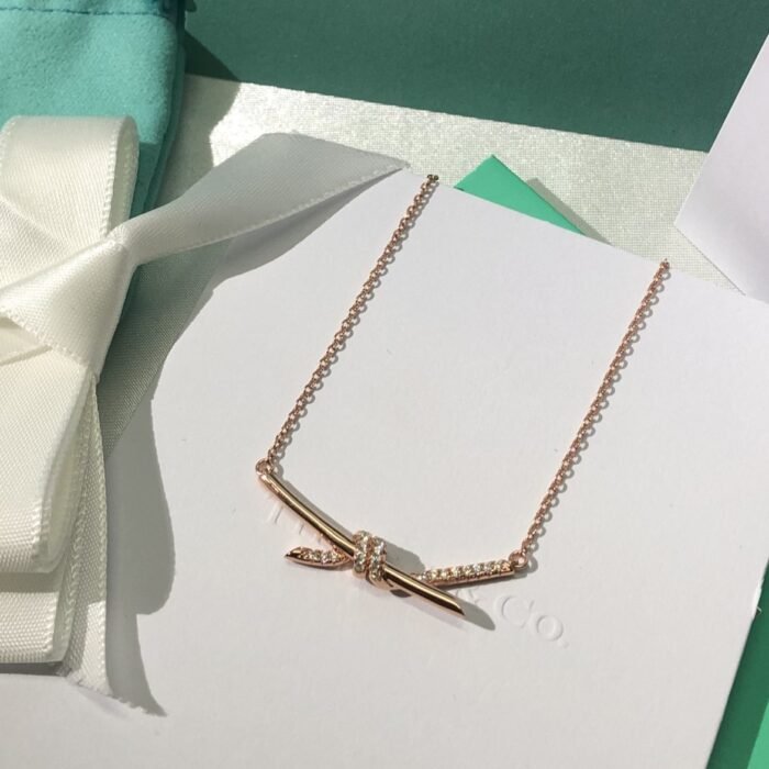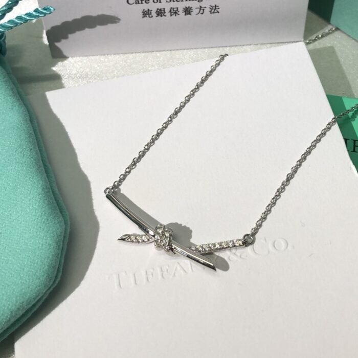 Home Tiffan* T necklace Knot necklace with stone(T家Knot带钻项链)