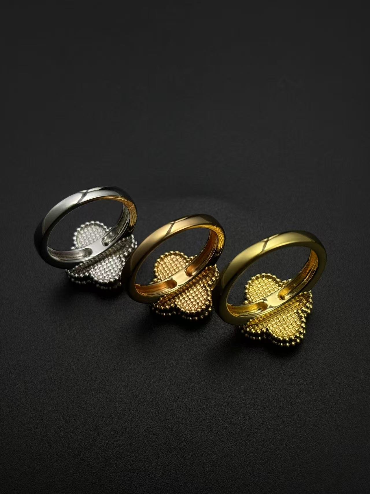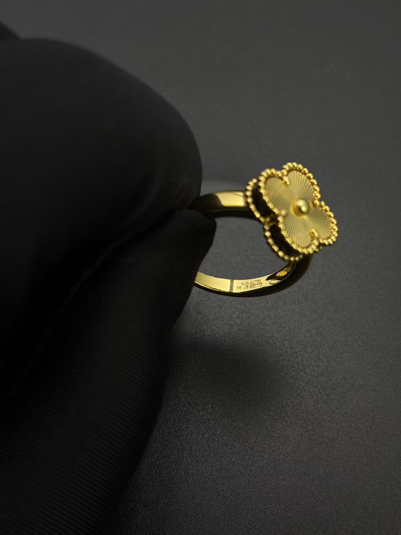 Home Van Cle* Ring Laser motifs ring(镭射四叶草单花戒指)