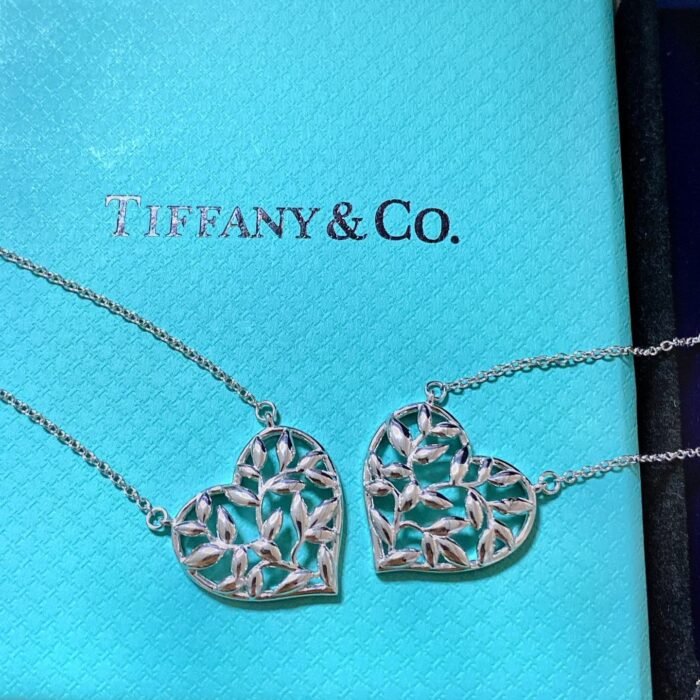 Home Tiffan* T necklace Leaf heart pendant necklace(T家树叶心形吊坠项链)